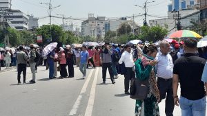 चर्को घामको तापले पनि रोकेन शिक्षकहरुको आन्दोलन