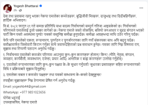 निर्वाचनमा एमालेलाई ‘धक्का’ लागेपछि योगेश भट्टराईले मागे सुझाव: “नेतृत्व र कार्यशैलीबारे निर्मम समीक्षा गरौँ”
